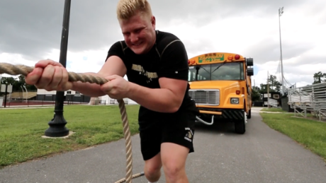 Have you seen Parker Boudreaux yet? This kid, he is the definition of a megastar. He committed to Notre Dame by pulling a 16,000 pound bus. That’s right, you heard me, 16,000 pound bus.