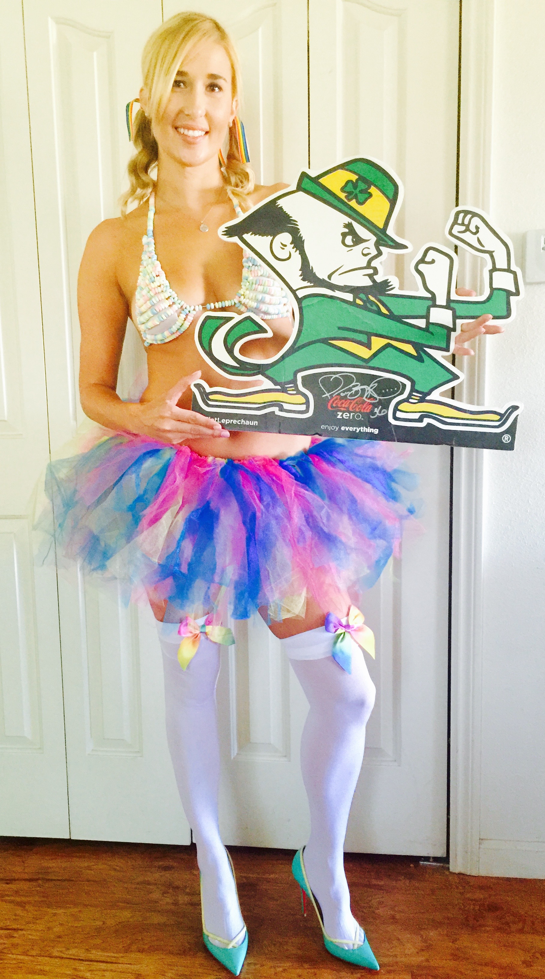 We have officially made it to the 2015 Notre Dame Football season which also means #CostumeGameDay has returned. This week I would like to welcome you to the “Candy Shop”, which you may have picked up from the teaser I posted this past Monday. As I mentioned, I believe that this season is going to be sweet! I predict that Notre Dame will defeat Texas 34-17. This game I’m locking in on the nickname #SugarTits. Not so much because of my outfit but because that’s what I like to call Brian Kelly when his nipples start to show through his polo.